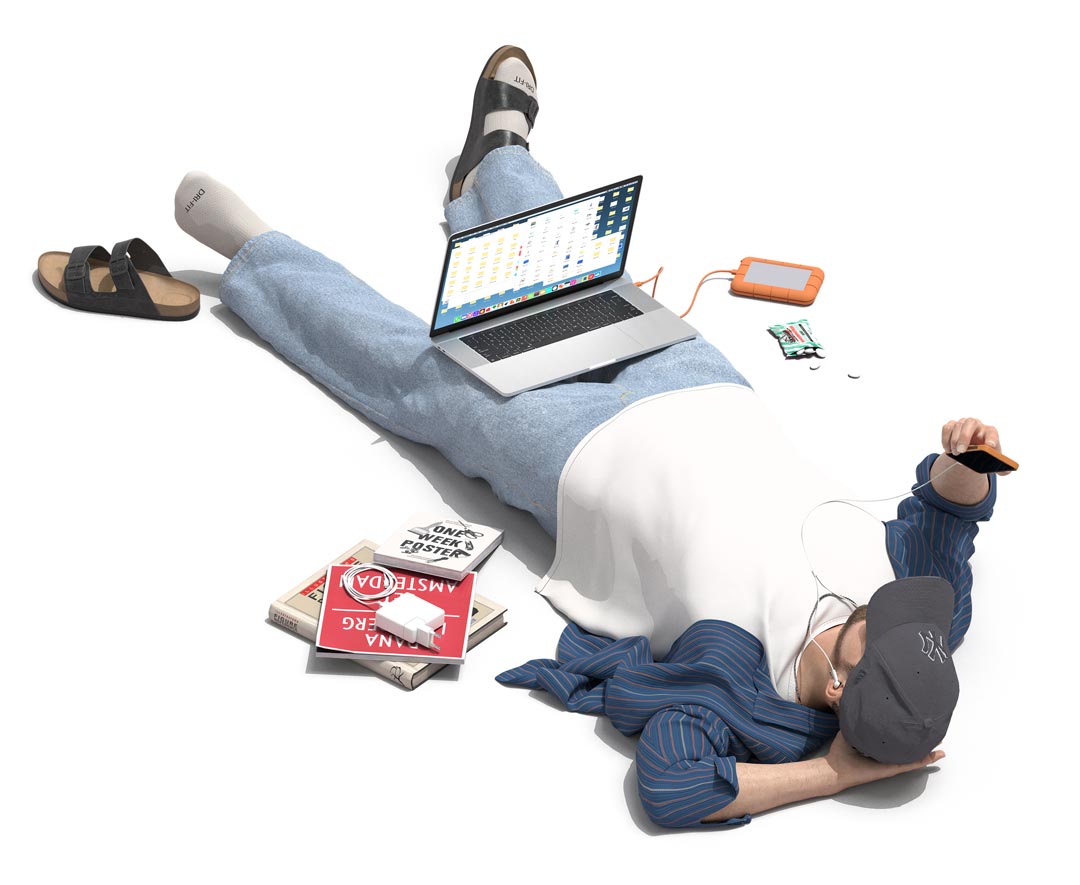 Max Guther is a Berlin based illustrator and designer using a unique 3d aesthetic to bring his slightly hyperreal illustrations to life. He creates worlds with the focus on both interior and exterior design but also on the minute details of everyday life, capturing a larger truth about human behavior. Apparently obsessed with the isometric perspective he is giving a wider scope of a scene and leading the viewer up to an an all-seeing vantage point.Selected Features: